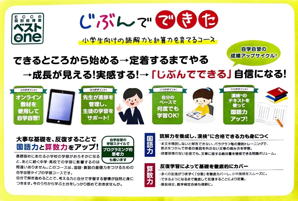 個別指導塾で、全ての科目に対応しているECCベストワンにお任せ下さい。